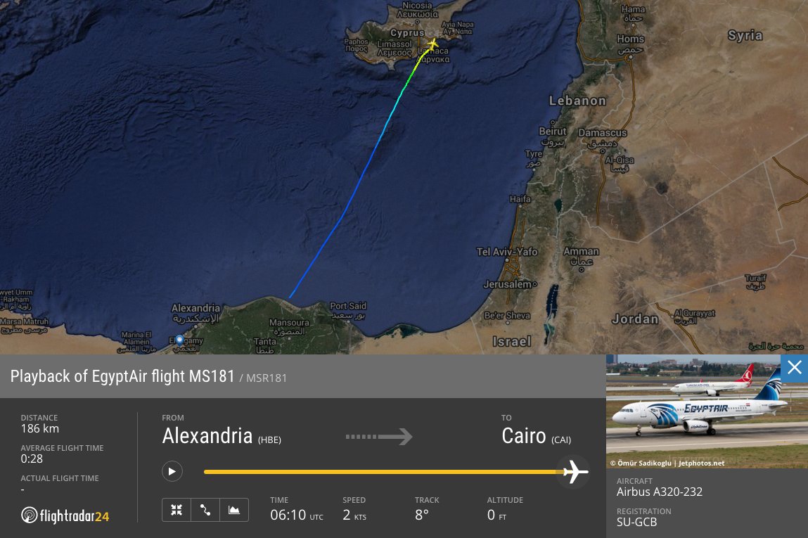 A statement from Egypt’s aviation authority said the flight, MS181, is an Airbus and has 55 passengers on board and five crew members.