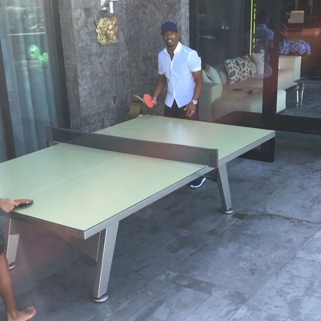 Image shows Patrice Evra playing table tennis.
