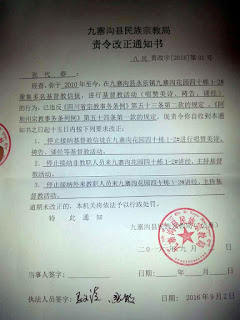 - Stop allowing non-cleric personnel into No. 1-2 of the 40th building of Jiuzhaigou Garden to preach and Christian activities.