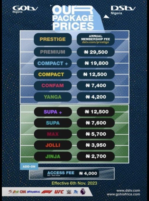According to DSTV, the new rate will be effective from Monday, 6th November 2023.