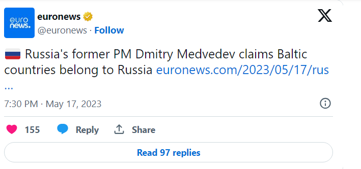 In May, he claimed the Baltic states – Latvia, Estonia and Lithuania – belonged to Russia, adding Poland was “temporarily occupied”.