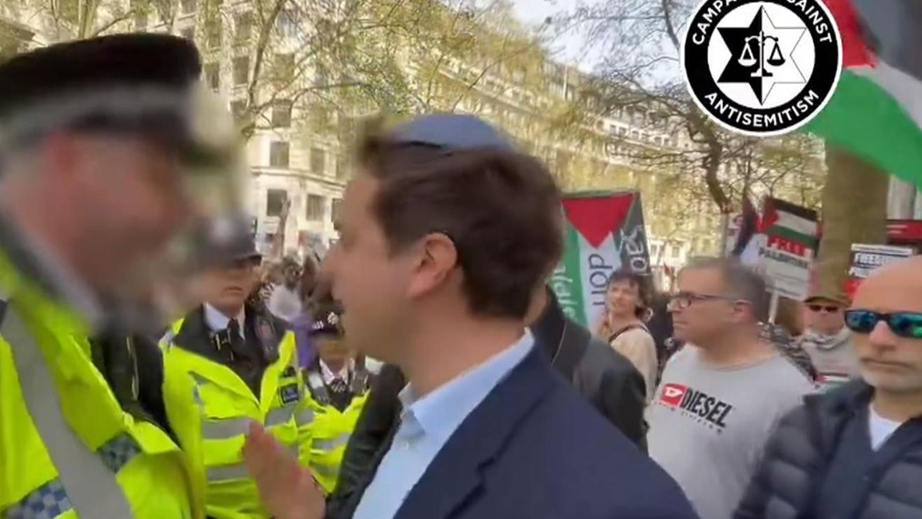 In the video, an officer appears to prevent Mr Falter from crossing the road and tells him: “You are quite openly Jewish. This is a pro-Palestinian march. I am not accusing you of anything, but I am worried about the reaction to your presence.”