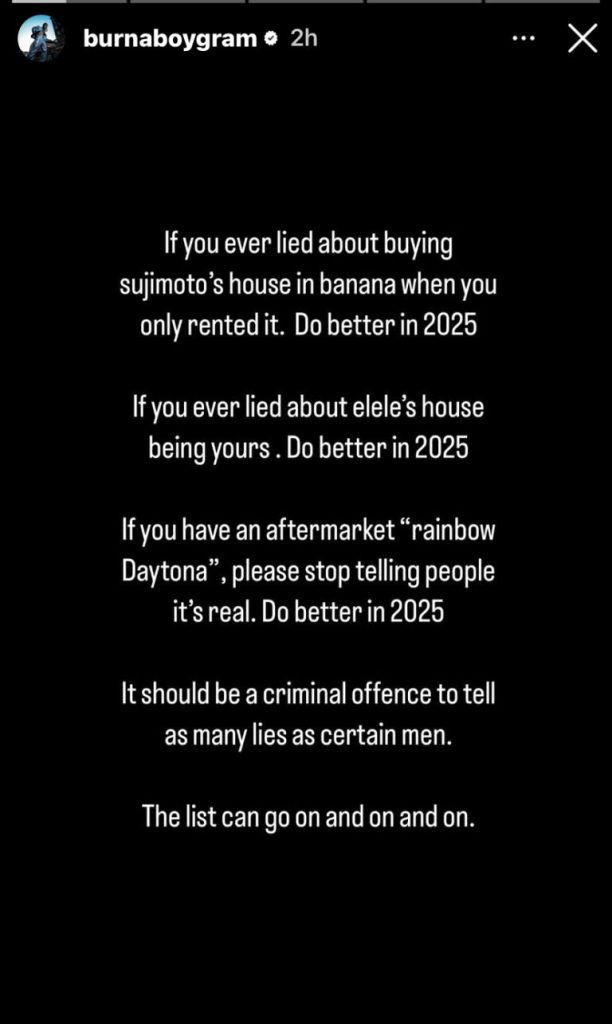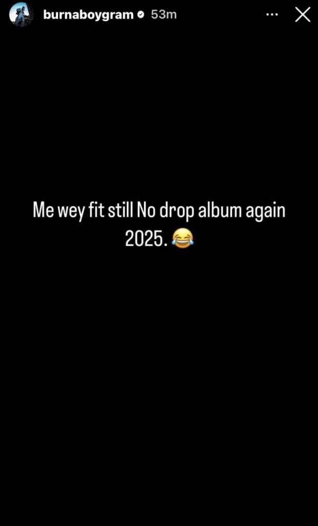 Burna Boy then went further to post that he might not drop a studio Album in the coming year 2025. He also stated that he might be interested in an interview with popular on-air personality Ebuka.
