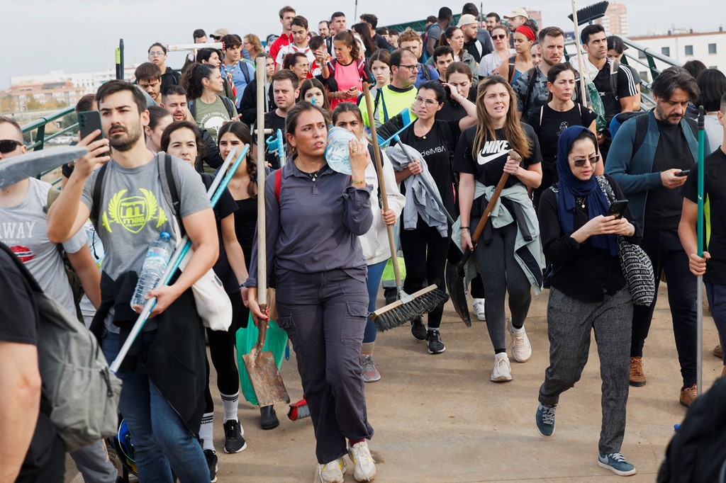 Some carried shovels and brooms to help clear away debris, while others had bottles of water.