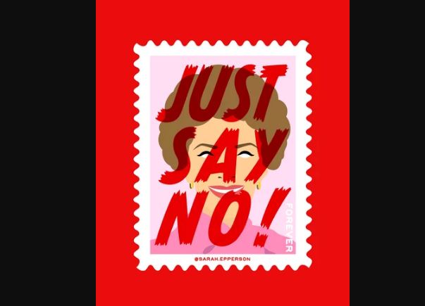 The discussion around the timing of the Nancy Reagan stamp’s unveiling led Epperson to make her own stamp of the former first lady with “JUST SAY NO!” written over Nancy Reagan’s face in red. The slogan comes from a campaign of the same name that Nancy Reagan led to raise awareness about drug abuse.